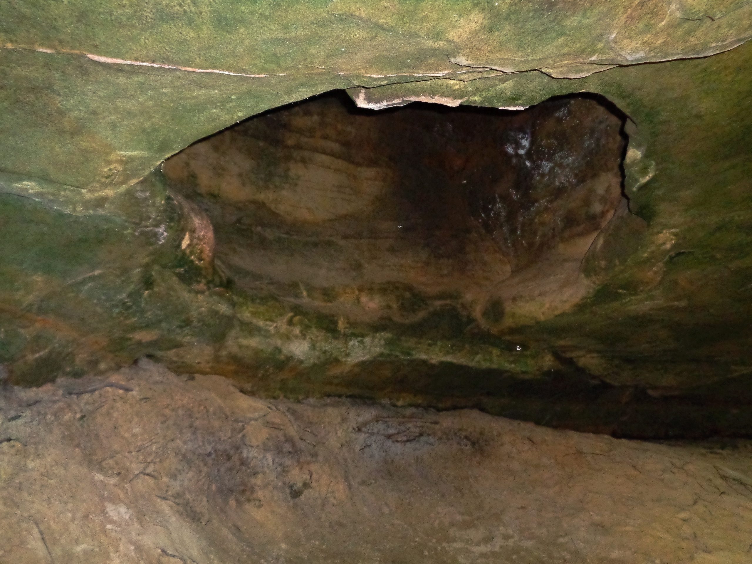 ….a po nějakých 20 (???) metrech ve stísněném prostoru (někde vyloženě po břiše, někde se dá i posadit) to člověka „vyplivne“ zde – velice nízkým otvorem. Dalo to práci než se Jetík vysoukal ven, hrabal kolem sebe rukama jako mravkolev, Drobek ať to ani nezkouší. (Jinak je to ale naprosto bezpečné – kdo tudy neproleze, ten se prostě vrátí zpátky)